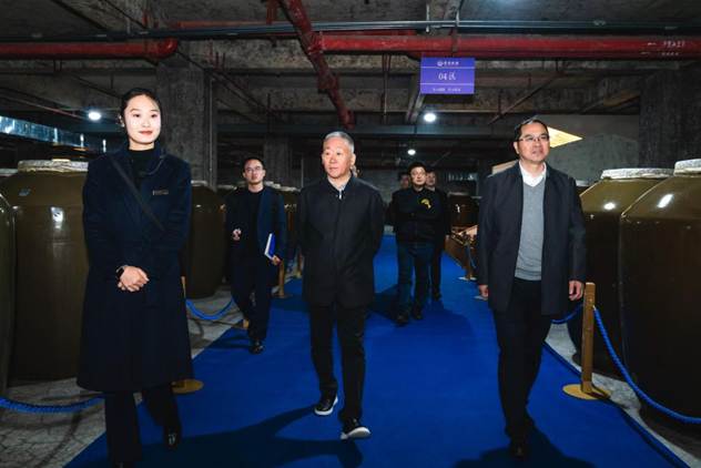 隨后,宋書玉來到建設中的珍酒莊園。這是珍酒傾力打造的酒旅融合項目,涵蓋白酒文化中心、國禮博物館、洞藏文化酒窟、云海餐廳、度假溫泉等,旨在為全球消費者提供高端、深度和全場景白酒文化體驗。宋書玉聽取項目建設情況介紹,得知酒庫板塊已建設完成,整體將于2026年建成,他對珍酒在酒旅融合方面的創新做法表示肯定。
